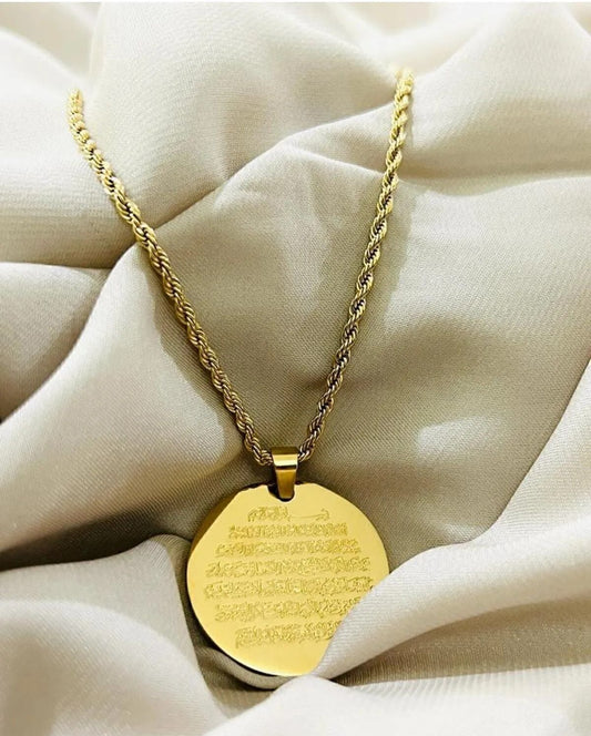 Luvary™ -Ayet-el Kürsi Kolye İşlemeli Çelik Burgu Zincirli