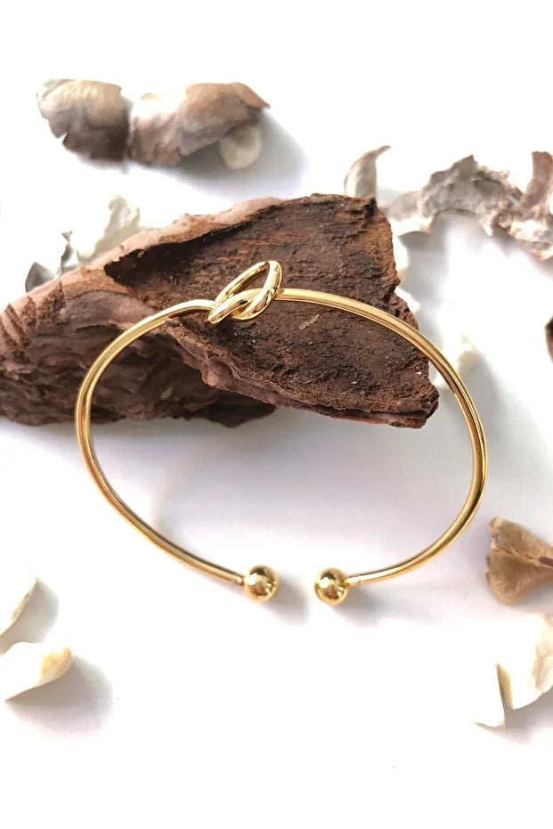 Kadın Altın Düğüm Detay Ayarlanabilir Kelepçe Bileklik