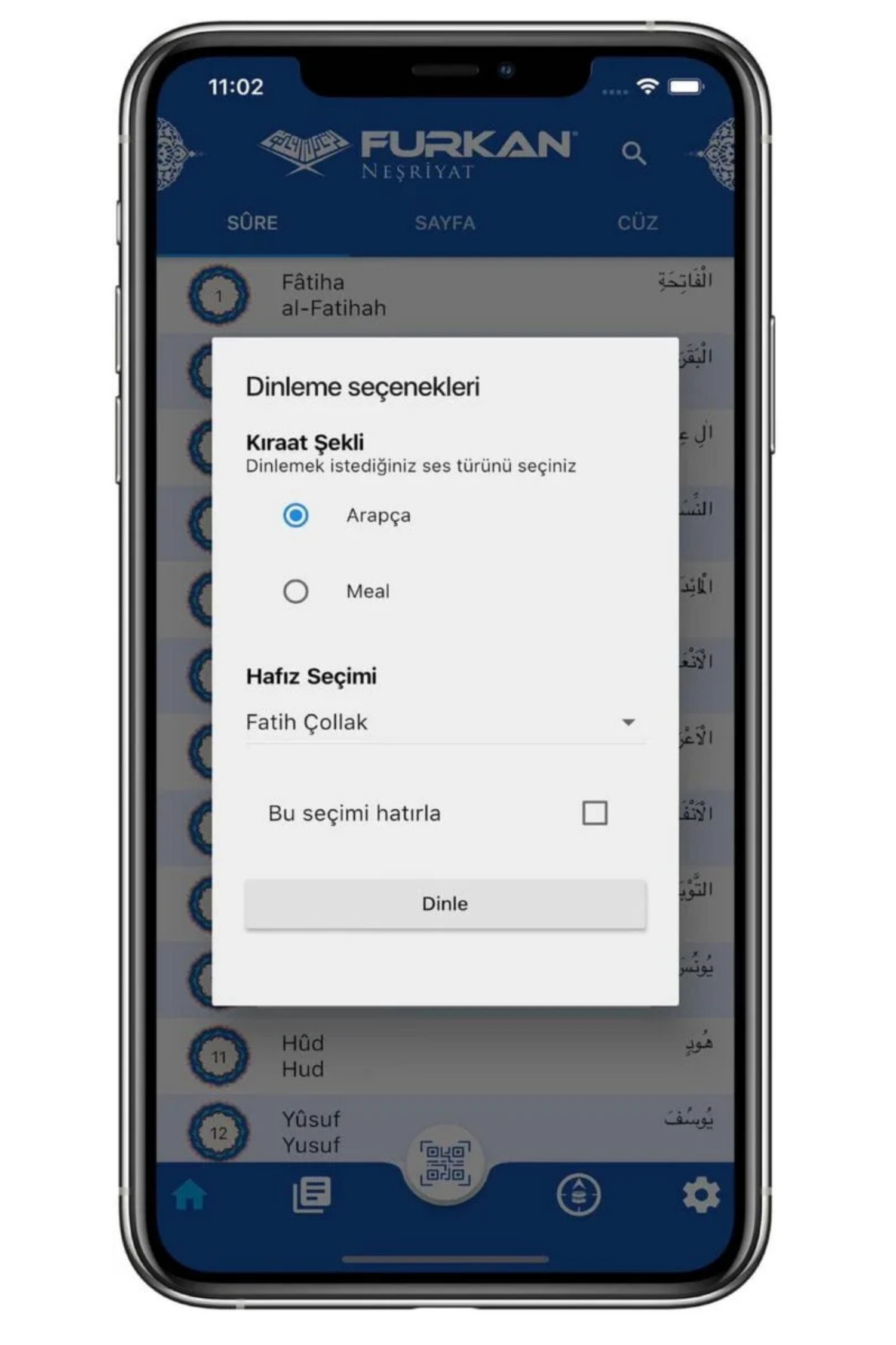 Telefon uygulamasını indir hesabını aç sayfa eşlemesini etkinleştir. 124 farklı imamdan tilavet seç ayet ayet tekrarla hızını ayarla. Arapça metni takip ederken Türkçe meal ve diğer dilleri aç kapat yer imi koy notlarını uygulumada kaydet senkron ilerle.